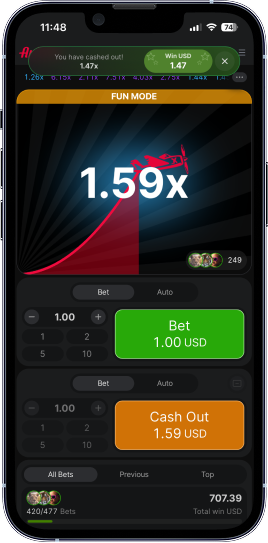 - The aircraft goes up on the screen, with the odds increasing. Players place bets before the round starts and cash out when the odds reach the desired level;